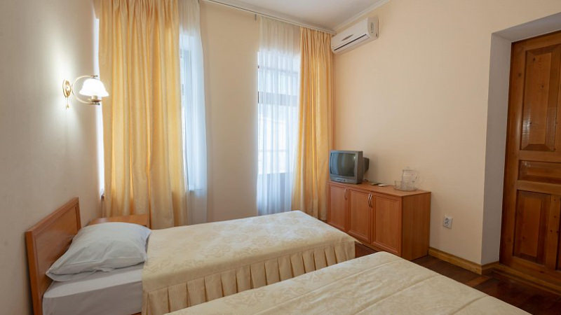 Площадь номера - 22 кв.м. 1 комната. 2 осн. места. балкон или веранда, вид на парк, без вида на море. В номере: телевизор; холодильник; кондиционер; душ/ванна; умывальник; туалет; фен; 1-спальные кровати; чайник. 1 доп. место: